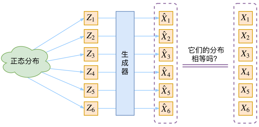 However, the difficulty of generative models is judging the similarity between the generated distribution and the true distribution. (That is, we only know the sampling results, not the distribution expressions)