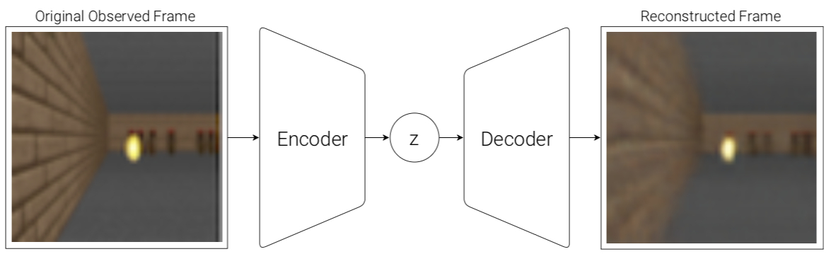 Train VAE model based on each frame of each game process, output result is $z\in \mathcal{R}^{32}$